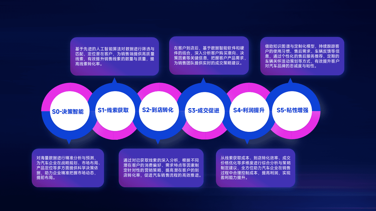 通过拓宽潜在客户来源、、、、优化线索分配并提高到店转化率,,,以增强销售效率。。同时,,,利用线索数据不断优化分析模型,,,有效提升转化率,,,扩大营销影响力。。。